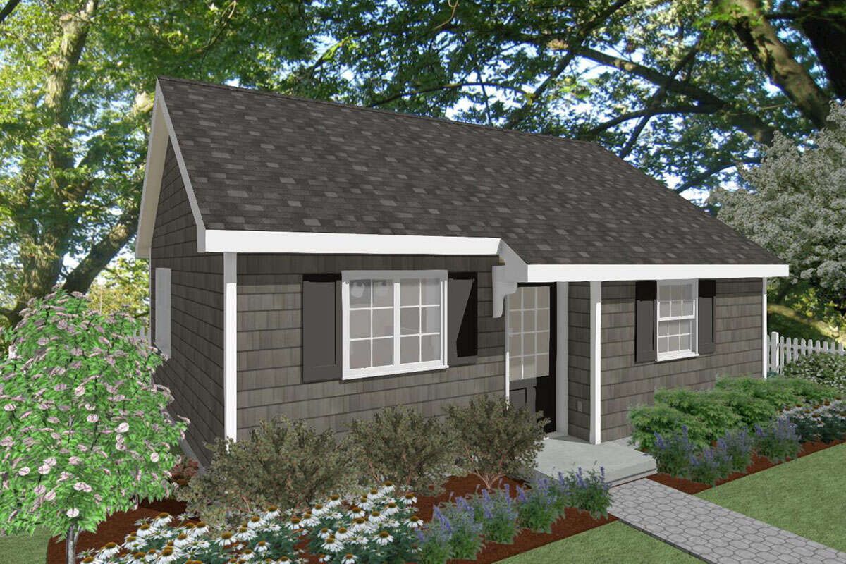This little cottage embraces simplicity and charm. The rooflines are likely modest gables with gentle slopes, giving it a friendly and approachable silhouette. Clean siding, modest trim, and perhaps a small front awning or porch give it character without complexity.