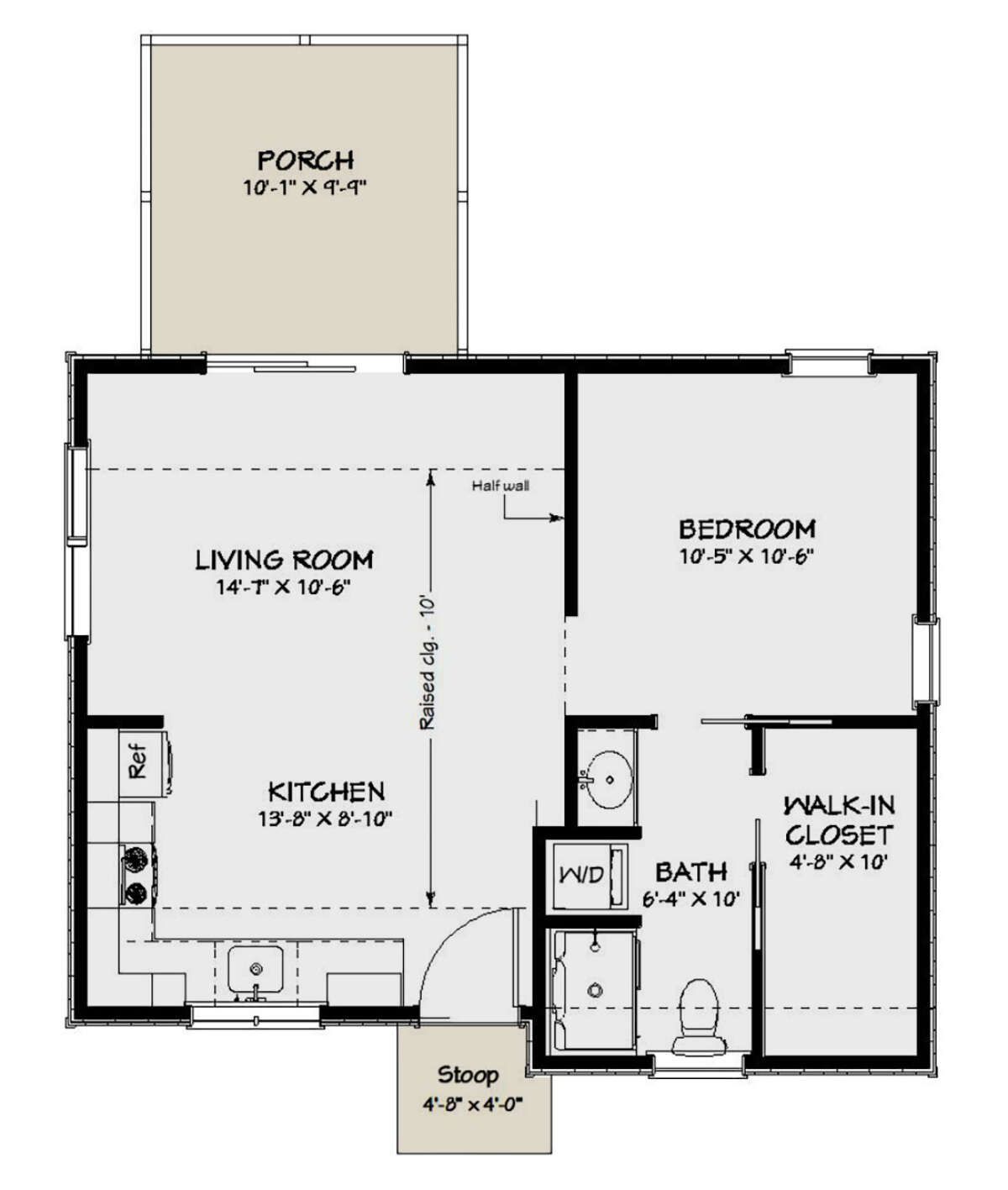 Compact 1-Bedroom Cottage Plan – 538 Sq Ft of Cozy Living