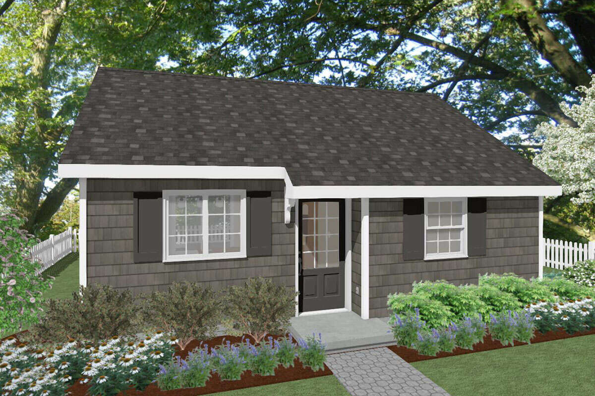 This little cottage embraces simplicity and charm. The rooflines are likely modest gables with gentle slopes, giving it a friendly and approachable silhouette. Clean siding, modest trim, and perhaps a small front awning or porch give it character without complexity.