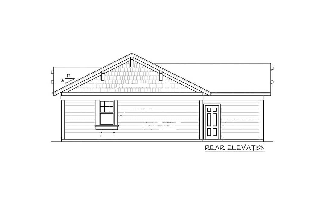 The roof is a simple gable design (pitch 6:12) that keeps construction costs down while still delivering visual interest. 2 A modest covered porch spans part of the front, offering a welcoming entry and outdoor seating zone.