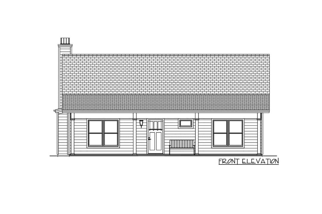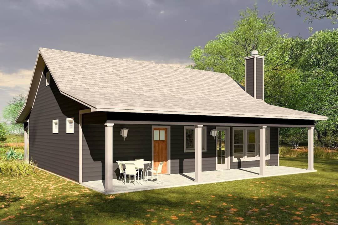 The cabin’s exterior is modest but purposeful. Both front and rear porches run the full width and are recessed enough to offer shade and shelter. Gable roofs keep the lines simple, which helps manage costs and improves durability. With siding, trim, and porch framing kept lean yet quality, the visual impression remains clean and welcoming.