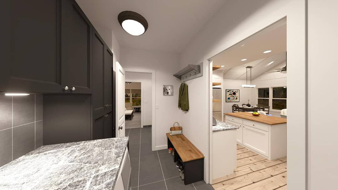 Your kitchen comes with an island—perfect for prep, serving, or casual dining. A pantry offers extra storage; the mudroom/laundry linkage keeps utility traffic out of sight lines. With counters wrapped around, the layout is efficient and allows multiple cooks to move easily. 2