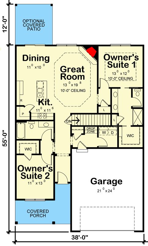 While no fixed cost is posted, a home of this scale and style with dual master suites likely falls in the range of **$350,000 – $550,000** in many U.S. markets (depending heavily on finishes, site, and labor). The extra detailing, flexibility, and dual suites tend to push values upward. 16