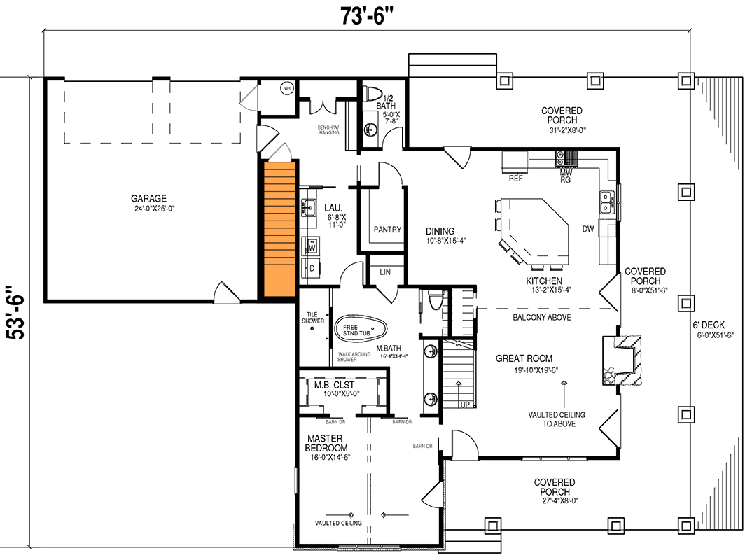 Plumbing and mechanical runs are minimized by clustering wet zones (kitchen, master bath, laundry) near each other. This helps reduce material and labor costs. 22