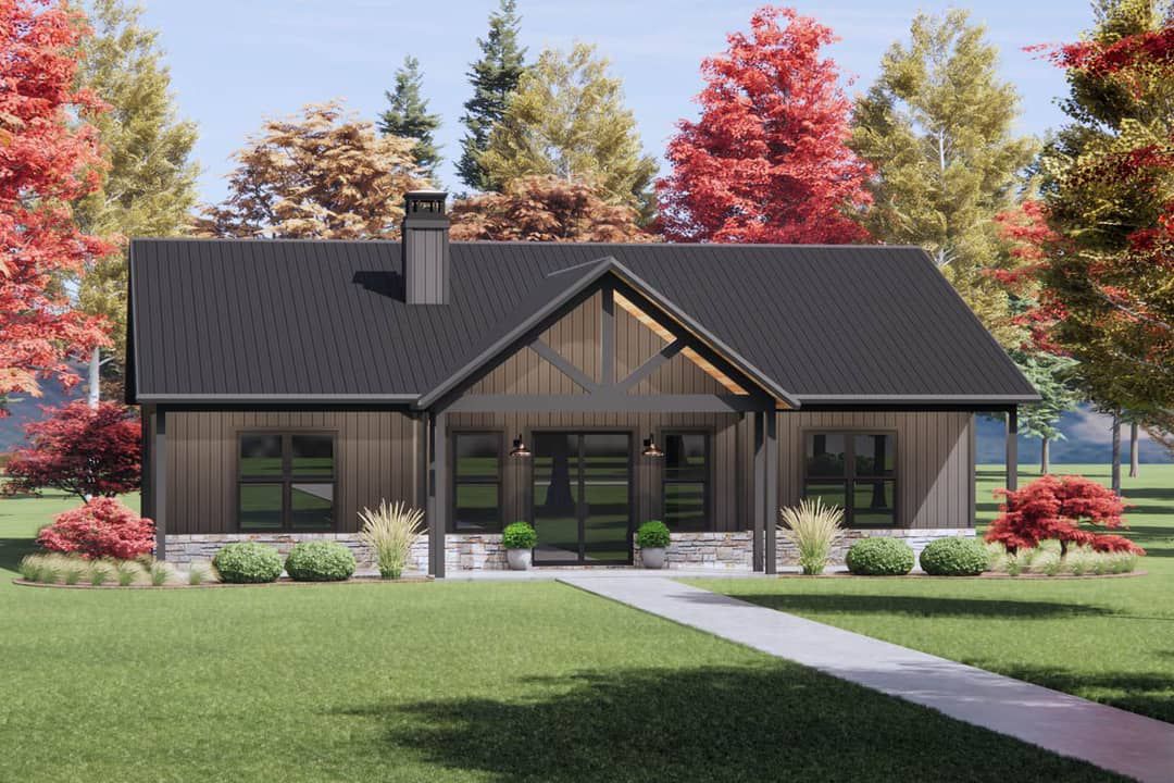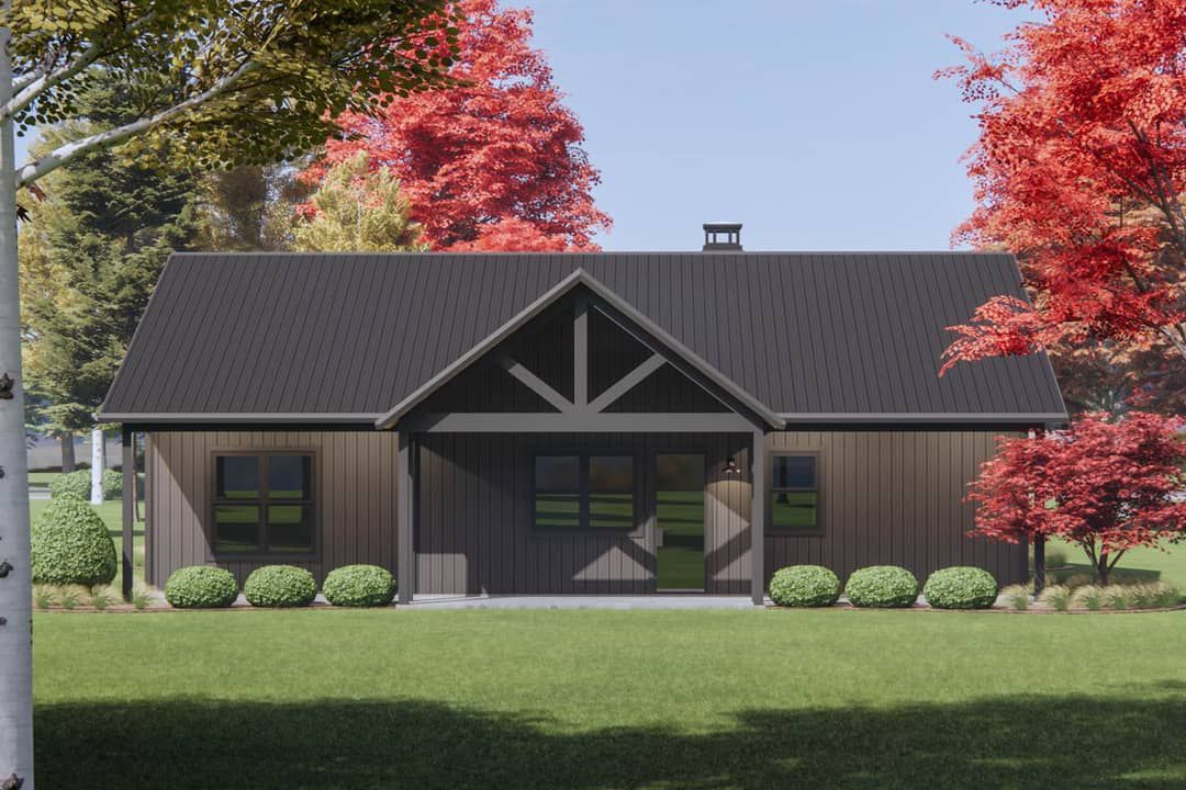 The simple rectangular footprint and balanced roof slopes simplify framing, roofing, and foundational work. The split bedroom layout reduces unnecessary circulation area, improving build efficiency and reducing waste. 15