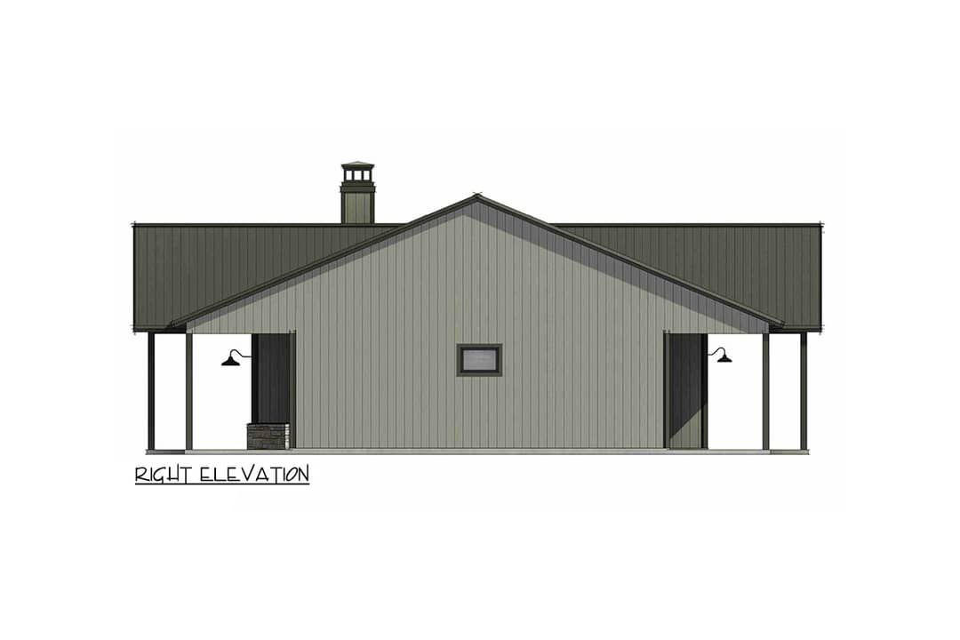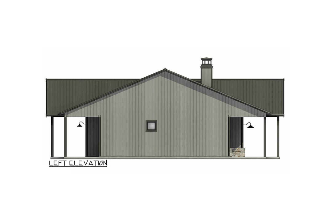 The narrow width and efficient layout minimize waste in materials and reduce unnecessary hallways or corridors. The extended porch is tied to the structure in a way that avoids overly long unsupported spans.