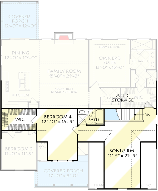 Roof framing is stick, with the primary slope at 10:12. The bonus above the garage is nested within these roof forms to reduce complex intersecting rooflines. 17