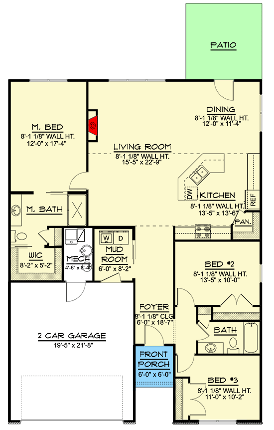 Ceiling height on the first floor is **8′-2″**, giving a comfortable scale throughout. 14 Vaulted ceiling in the great room increases visual volume without overly complicating structure. 15
