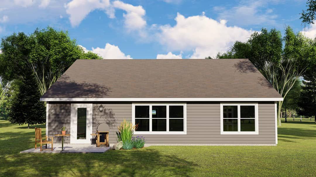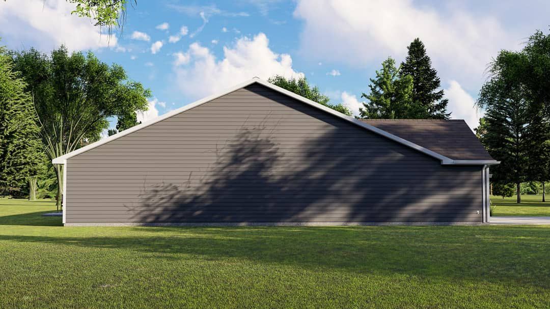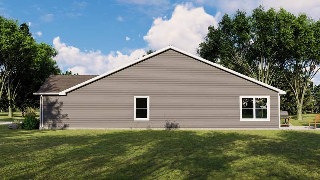 This plan offers excellent balance: three bedrooms with a split layout, functional utility areas, and a striking vaulted living core. The separation between the master suite and secondary bedrooms gives both intimacy and flexibility. The covered porches add outdoor usability, and the compact footprint keeps construction complexity manageable. If you desire a home that is efficient yet inviting, this plan checks many boxes without overextending.