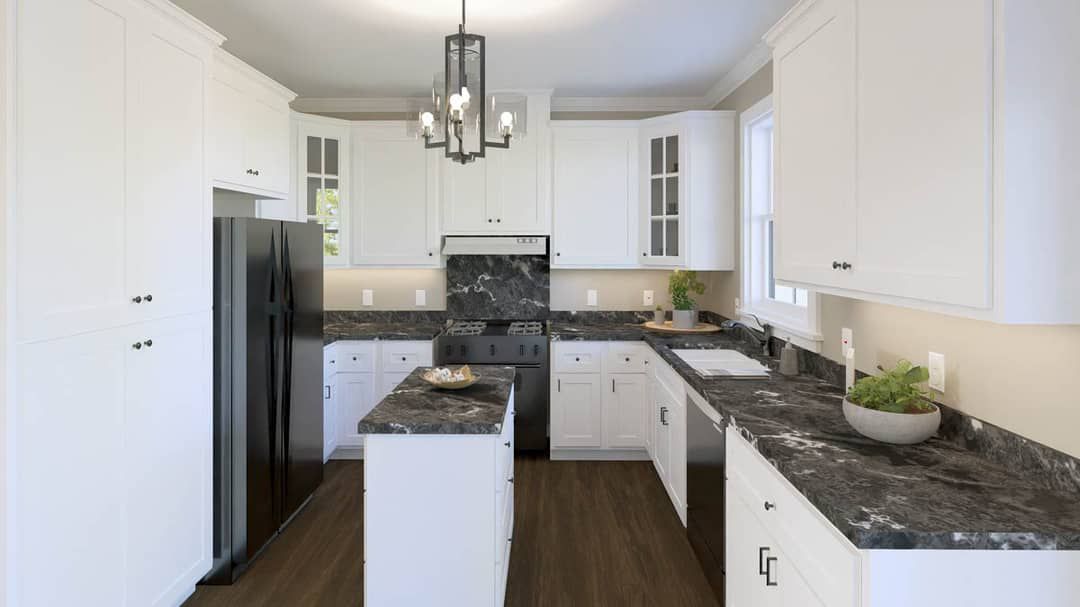 A window above the sink brings honest daylight and backyard views. The efficient work triangle places the range, refrigerator, and sink where steps are minimized. Add under-cabinet lighting and a pull-out trash station, and you’ll wonder how you ever cooked without them.