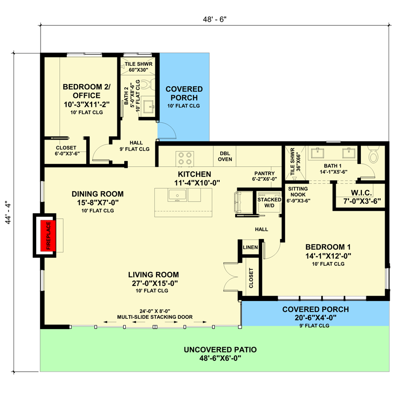 Vaulted living and dining spaces may reach heights of 12 to 14 feet or more, depending on your finish level. Peripheral rooms maintain 9′ ceilings for human scale and ease of lighting design. Roof framing uses a mix of shed and gable forms, depending on site grades and visual goals.