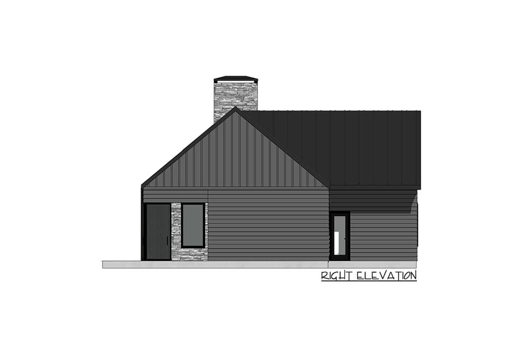 Deep overhangs protect from sun, and porch zones wrap around key living areas. Natural materials—timber, stone, vertical siding—anchor the cabin into its landscape, allowing it to read as contemporary yet connected to site. The cabin width and height are modest, preserving scale and fitting comfortably into wooded or semi-rural settings.
