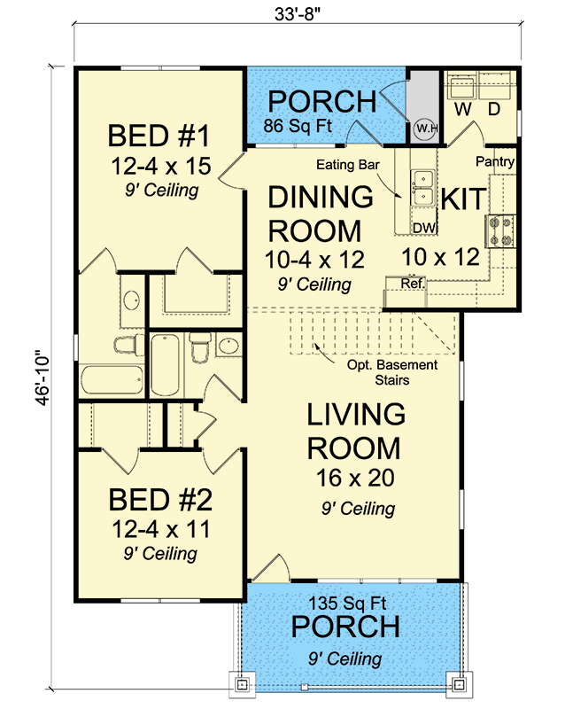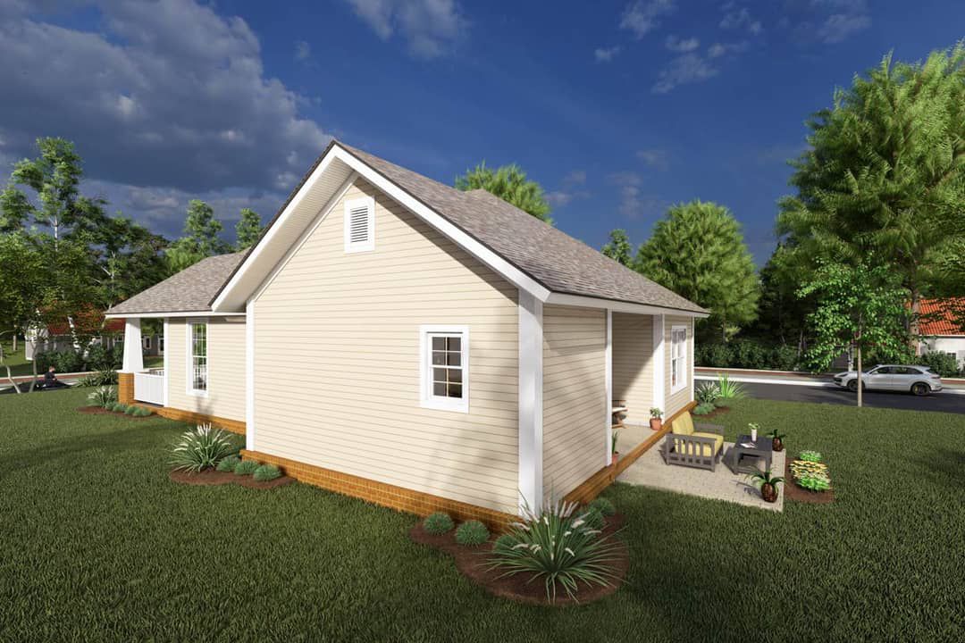 Flexibility is built in. The secondary bedroom easily doubles as a hybrid office-guest room with a sleeper sofa and compact desk. If your lot allows, a modest rear bump-out can become a sunroom, craft studio, or play space without reworking the core.