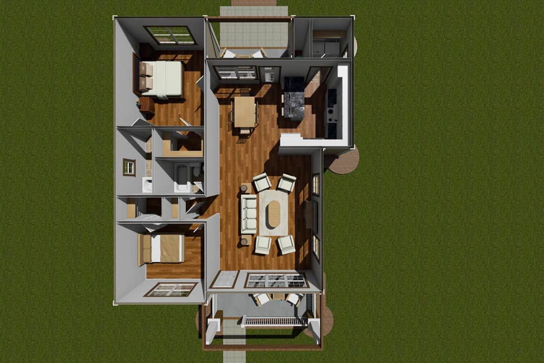 Compact Comfort: Designing a Stylish 60 sqm Two-Bedroom Bungalow
