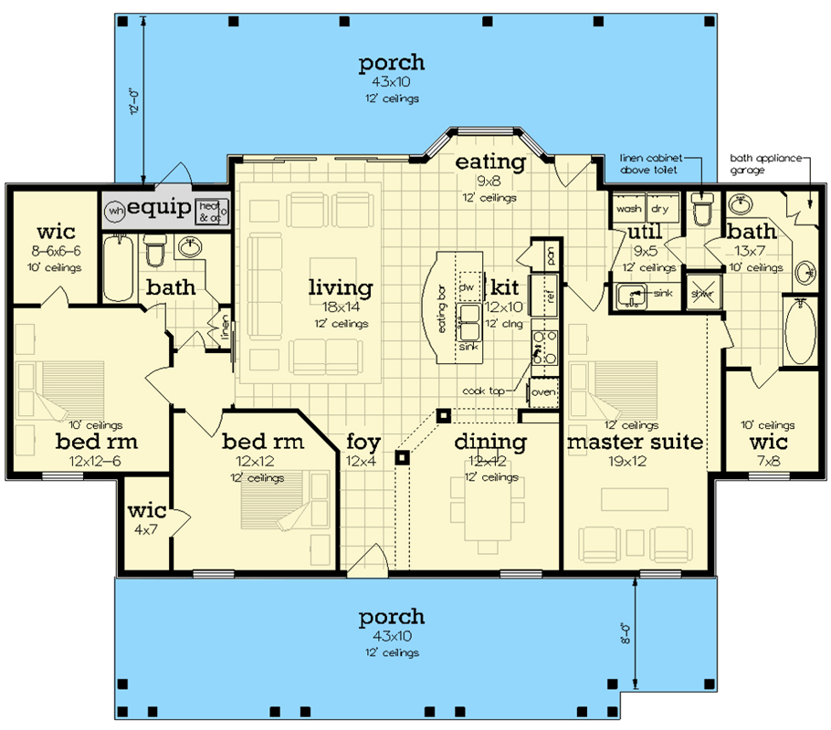 Front and rear porches are signature features, providing sheltered outdoor living that connects to the interior rooms. Portions wrap around to create semi-private zones. Because the home is raised, views and airflow tend to improve, and the porches feel integral, not tacked on.