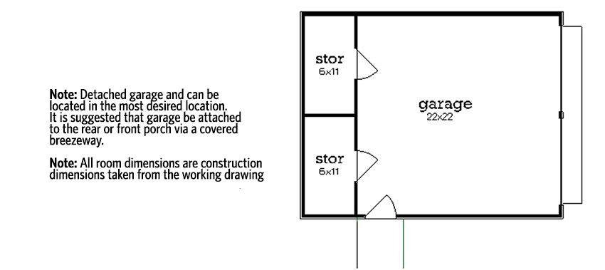 The base plan does not include a garage, but a detached two-car garage is an available option. That flexibility lets you position it on your site as best fits your lot dynamics without altering your home’s character. It can also include additional storage bays to minimize clutter in the house.