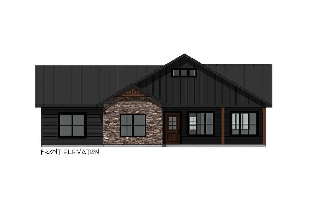 This rustic ranch plan offers an efficient and warm footprint: about 1,162 square feet of living space, three bedrooms, and two full bathrooms. Anchored by a cozy front porch and complemented by a rear porch extension, it balances charm with utility. Built in a single level, it’s ideal for small-lot living, downsizing, or a comfortable primary residence. 0Floor Plan: