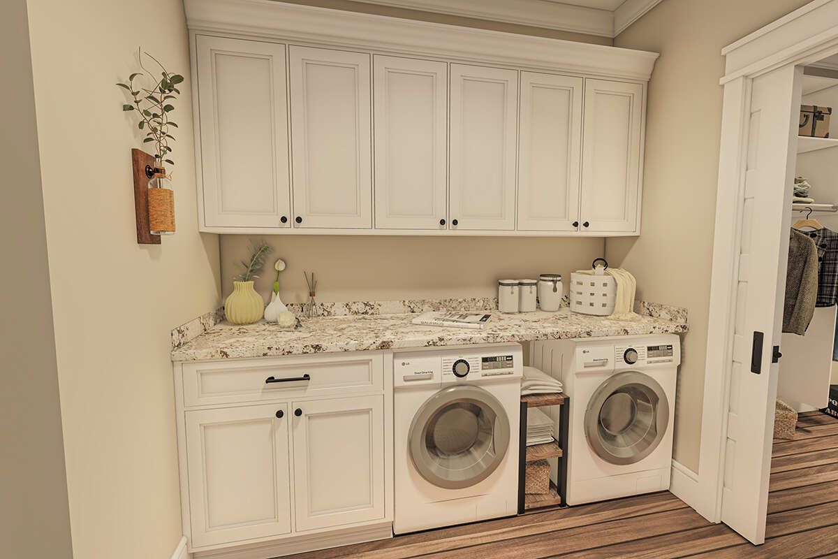 The side-entry two-car garage offers 611 sq. ft. and includes a storage closet. Entry leads into a mudroom, making it practical and discreet. 15Inside, storage is layered: walk-in closets, linen closets, pantry space, and mudroom organization. The layout avoids wasted corridors and keeps utility near daily zones. 16