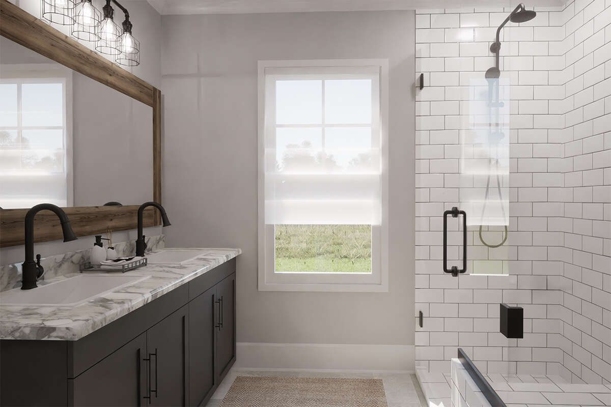 Plumbing, mechanical, and utility lines are clustered near baths, kitchen, and laundry, minimizing run length. Thoughtful orientation and overhangs help moderate solar gain. The home’s design encourages efficient systems without sacrificing volume.