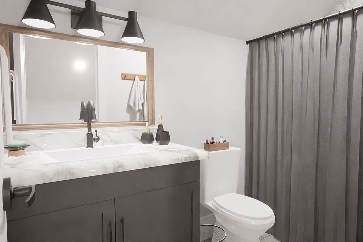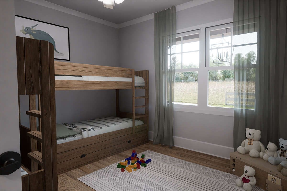 Bedrooms 2 and 3 share a hall bath, with closets and daylight exposure. The half bath (powder room) serves general traffic near living areas. The loft level includes the third full bath for flexibility. 10