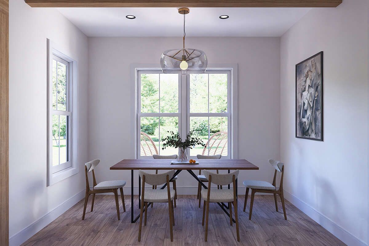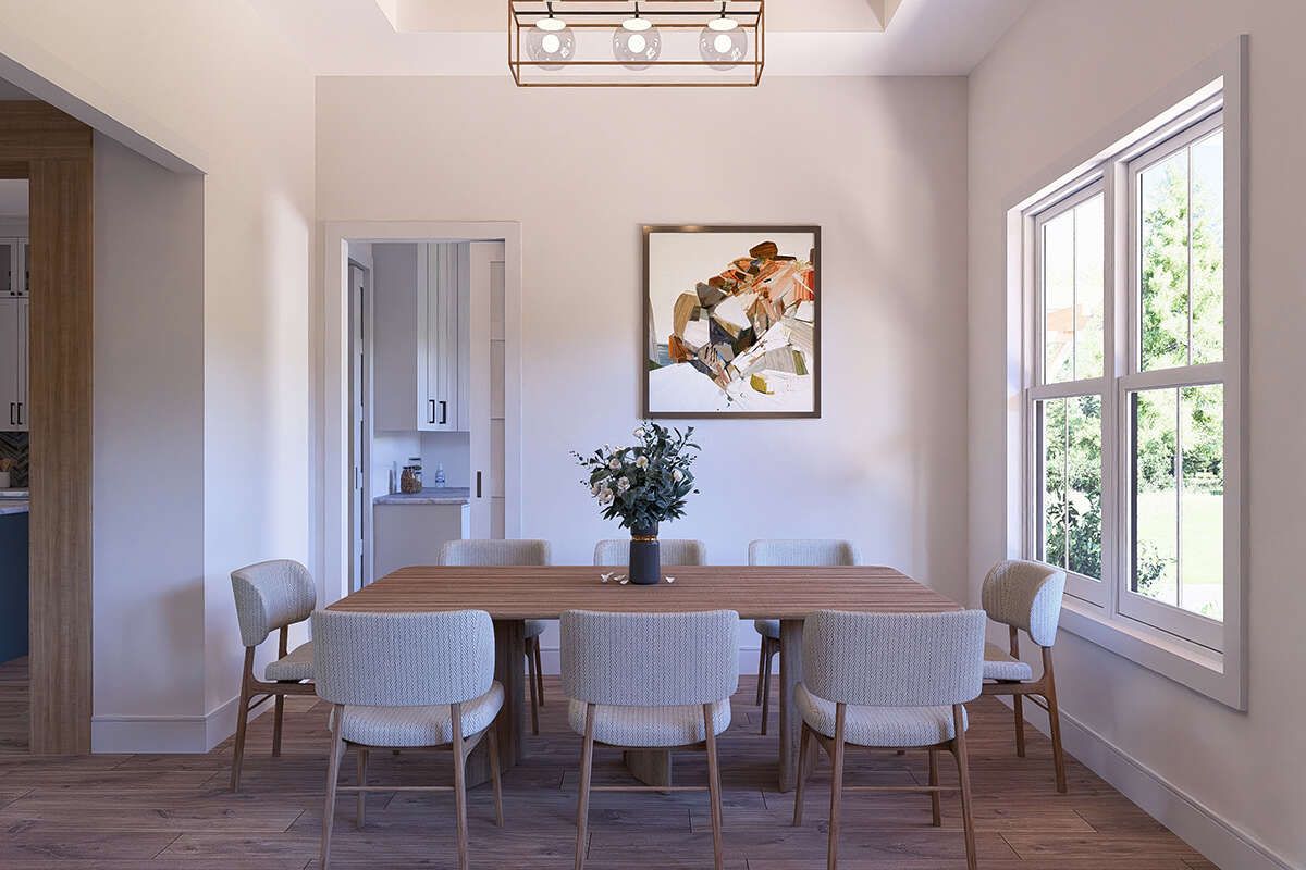 The dining area sits comfortably between kitchen and rear access, making entertaining and everyday meals seamless. With well-placed openings, the rear covered porch feels like part of the living footprint. 15