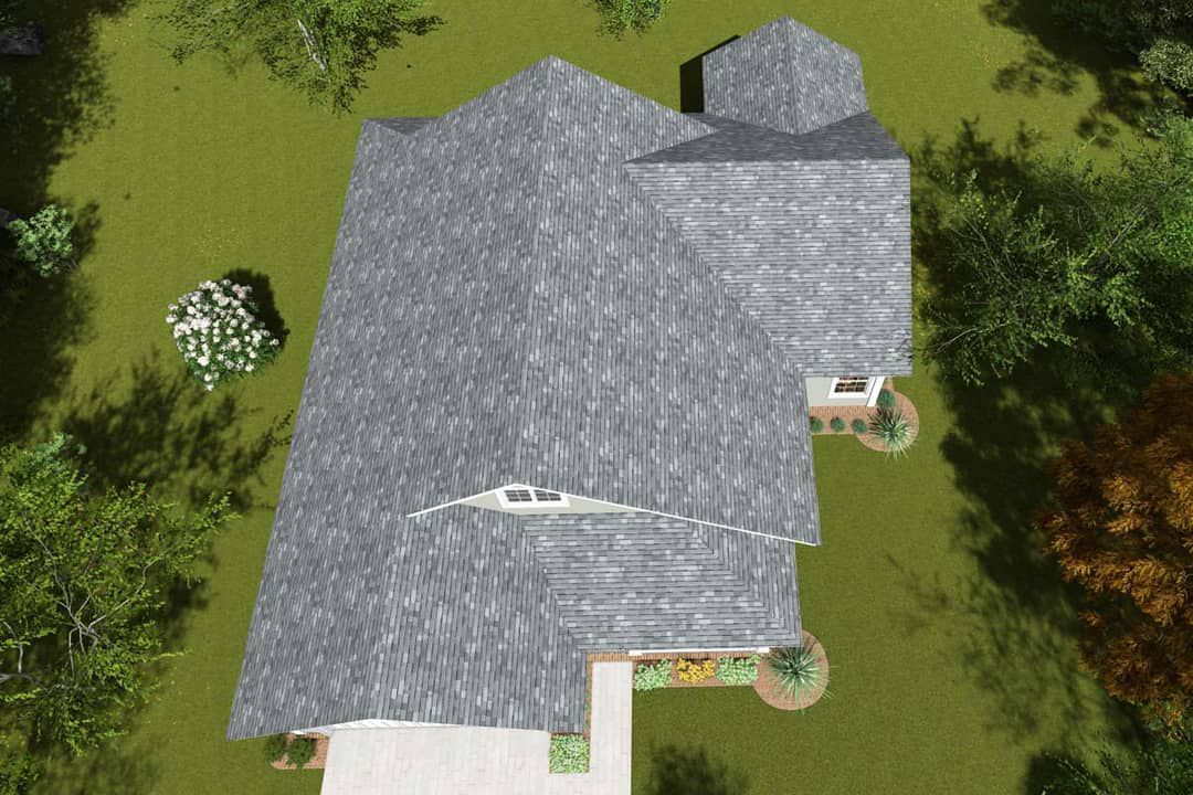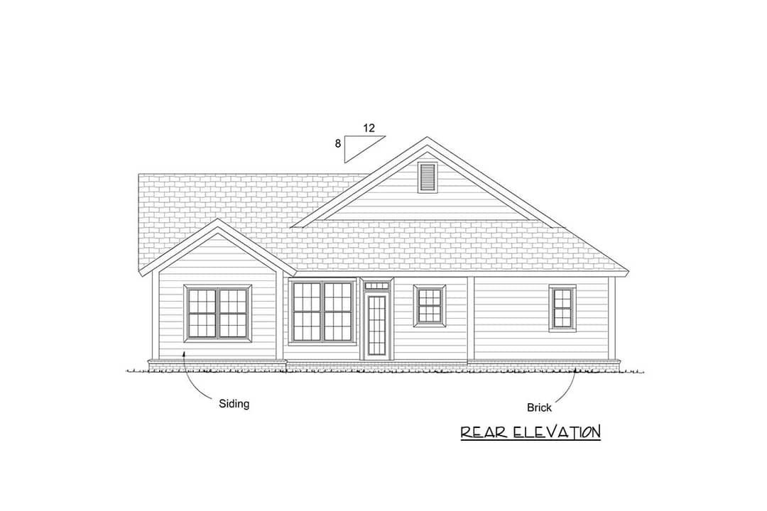 The façade leans toward classic cottage or country styling—modest overhangs, balanced proportions, and a simple roofline to keep costs and maintenance in check. The attached garage is integrated cleanly so it doesn’t dominate the character. 5