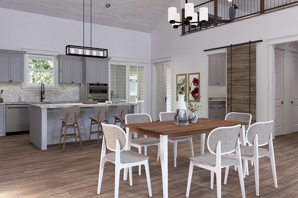 The dining area will be unobtrusively adjacent to the kitchen and possibly opens to a rear porch for seamless indoor-outdoor entertaining.