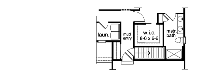 Utility rooms (laundry, mechanical) are sited near bedrooms or baths to reduce plumbing and HVAC runs and to keep noise away from living areas.