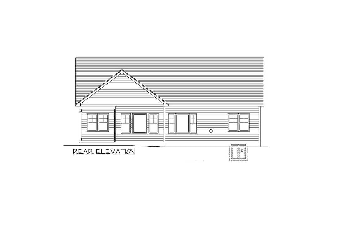 A rear covered patio or porch is expected to connect to the main living zones. Sliding doors or French doors open wide to merge indoor and outdoor life. It would provide shaded outdoor seating, dining, or lounging space.
