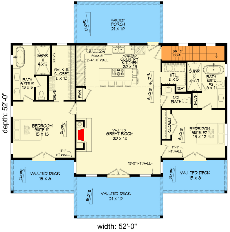 This mid-century modern design delivers bold character in a well-balanced package. The vaulted porch, clean lines, generous porches, and optional lower level create flexibility and a strong connection to outside. For buyers wanting architectural impact plus practical living, this plan offers a beautiful balance of form and function.