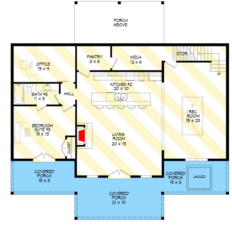 An optional lower level is included, with space for a second kitchen, bedroom, bathroom, rec room, and office. This flexibility is ideal for sloped lots or future expansion. 19