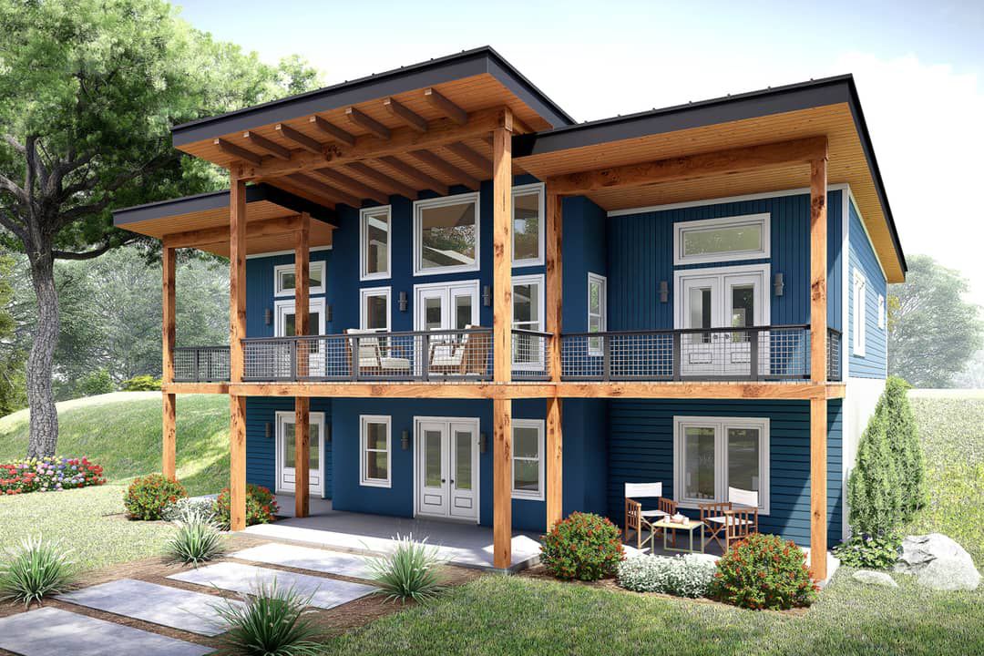 This mid-century modern design delivers bold character in a well-balanced package. The vaulted porch, clean lines, generous porches, and optional lower level create flexibility and a strong connection to outside. For buyers wanting architectural impact plus practical living, this plan offers a beautiful balance of form and function.