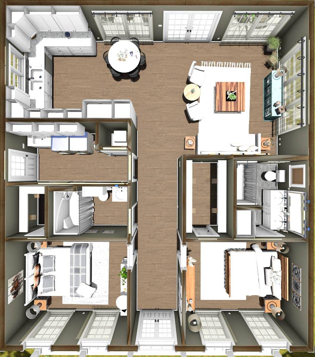 This plan strikes a lovely balance: rustic barn inspiration with modern farmhouse comfort. The dual porches invite indoor/outdoor living, the layout is efficient and private, and the form is bold yet approachable. For those who love country character but want practicality, this barn-style design is a strong contender.