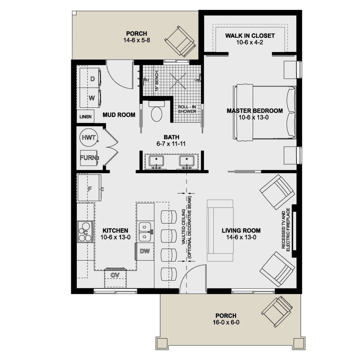 Though small, this modern farmhouse design delivers charm, efficiency, and utility. It’s ideal as a primary small home, guest cottage, or vacation retreat. The open core, logical layout, and generous porches give it a sense of space beyond its size. If you want a stylish, compact home with modern farmhouse lines, this plan makes smart use of minimal square footage.