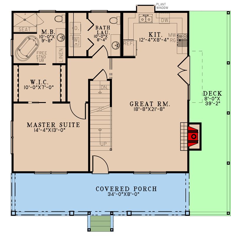 A full **8-ft deep front porch** spans the width of the home, inviting seating, shelter, and a welcoming presence. 14