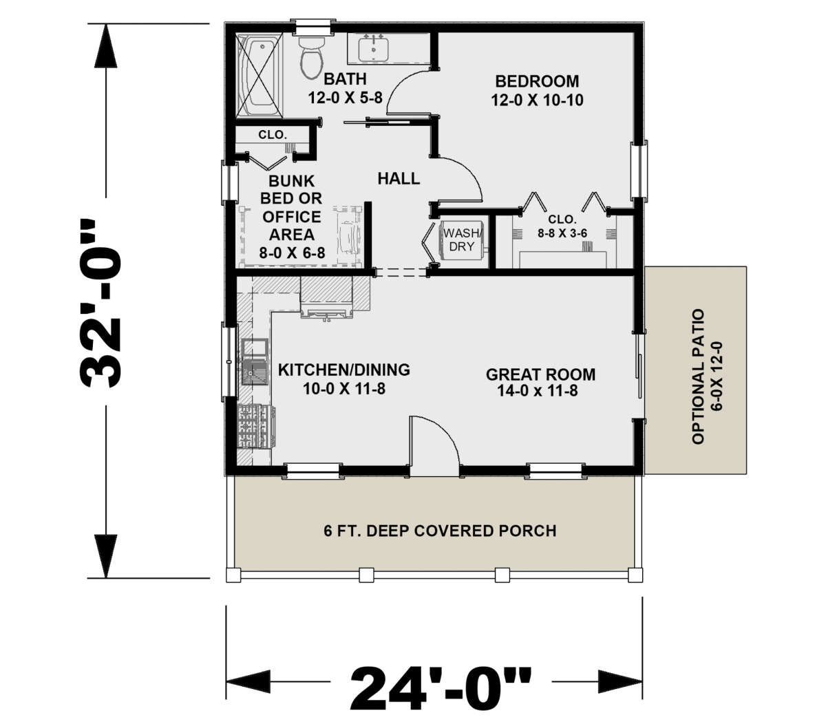 Cozy Cabin Plan – 624 Sq Ft | 1-2 Bedrooms & 1 Bath