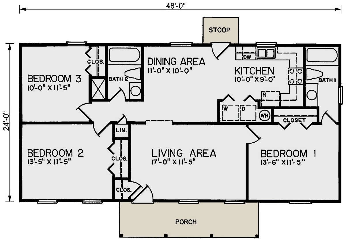Though the plan doesn’t specify a back porch, the layout leaves opportunity for a rear patio or covered area, accessed from the living or dining space.