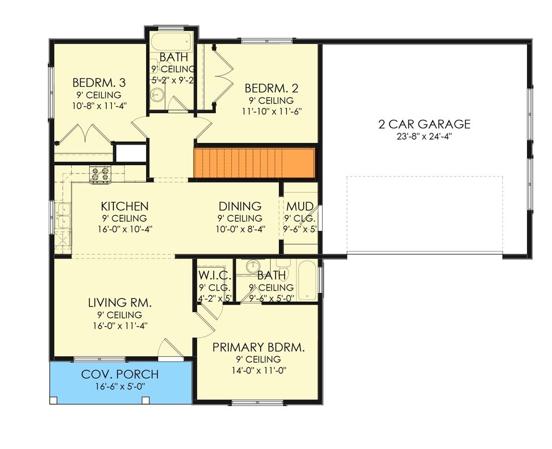 One-Level Cottage with Front Porch – 1,656 Sq Ft