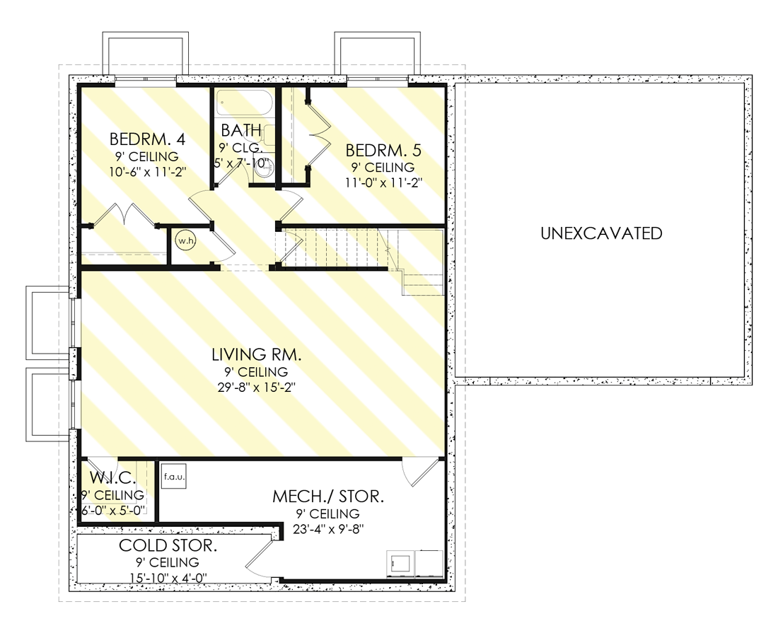 Main and optional lower levels both assume **9 ft ceiling heights**. Framing is with 2×6 walls for structural integrity and insulation depth.