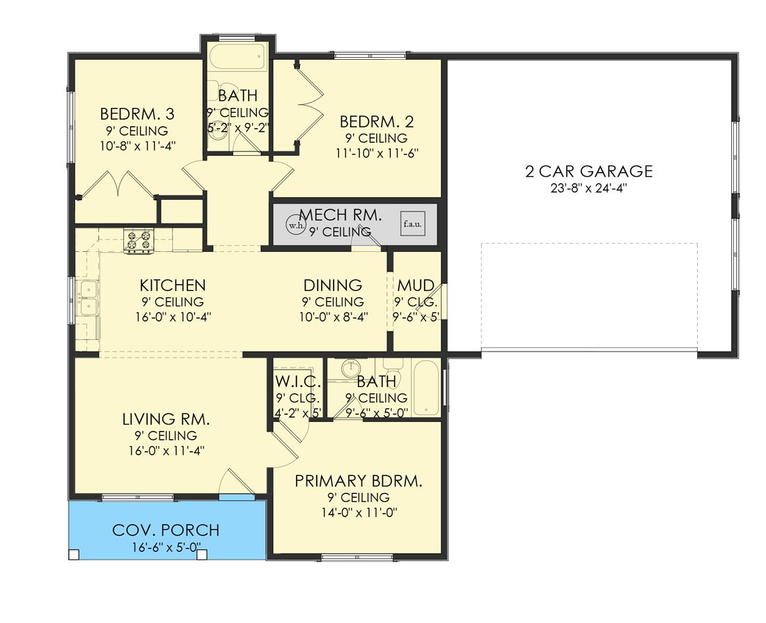 3-Bed Traditional Home with Split-Bedroom Layout – 1,382 Sq Ft