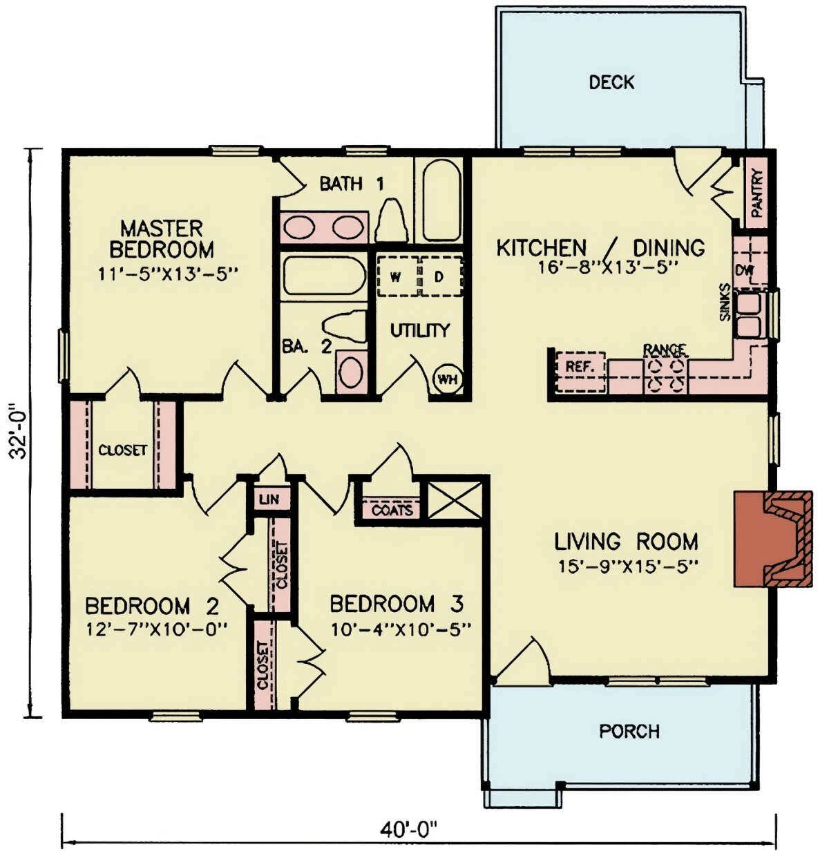 Though rear porch is not shown, the layout’s end walls could support a small patio or porch extension if desired.