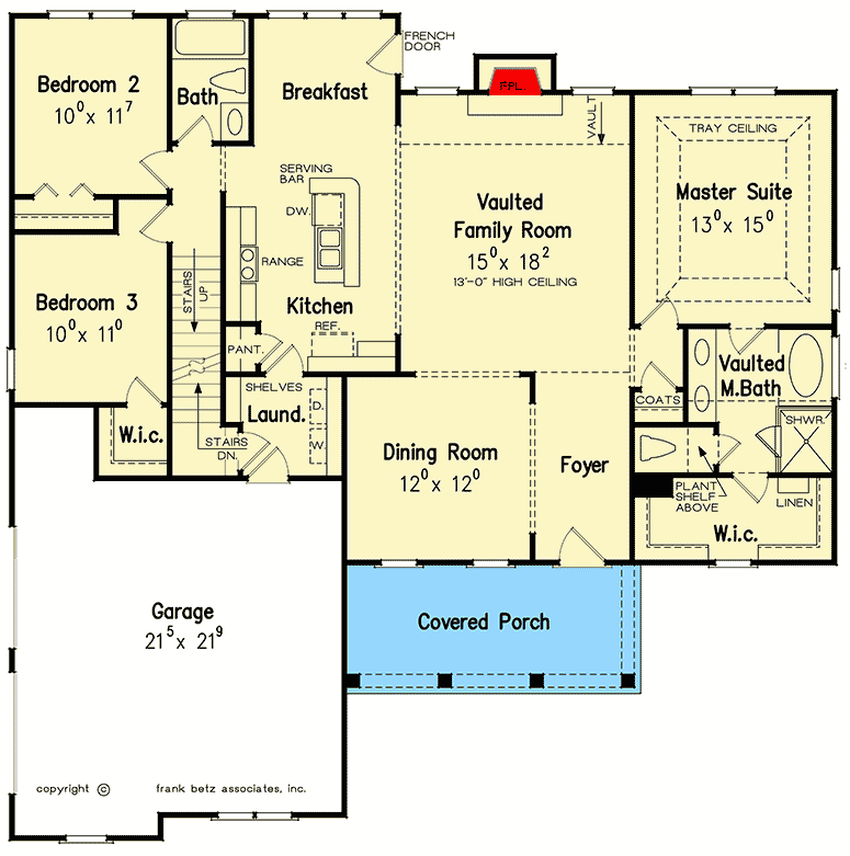 A covered front porch extends the entry area and offers a comfortable place for seating or greeting guests. 13