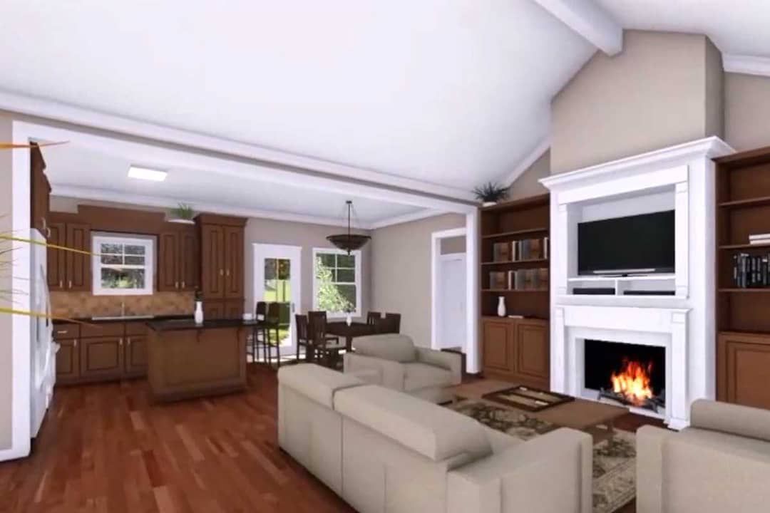 The vaulted family room opens into the dining and kitchen zones, creating visual continuity and an airy feel. 9
