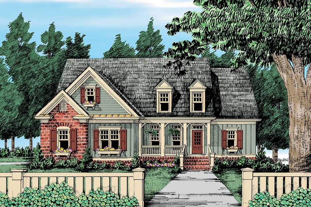 The design greets visitors with cheery dormers and a covered front porch—classic Craftsman touches that add warmth and charm. 1