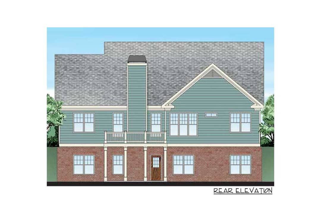 The **10:12 roof pitch** and balanced eave overhangs give strong proportions. The side-entry garage keeps the façade clean, while dormers break up the roofline and add architectural interest. 3