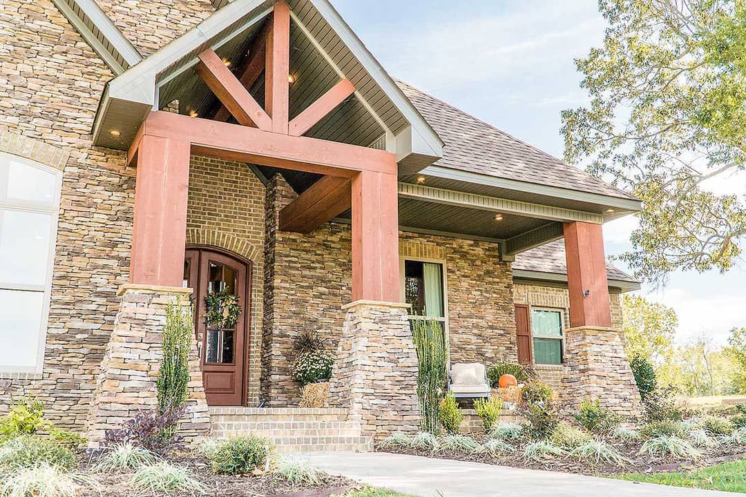 The exterior features a mix of brick, stone, and shake siding — a hallmark of Southern Craftsman architecture that gives the home strong curb appeal. 0