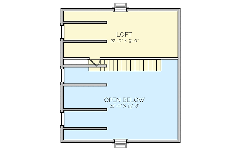 Bedrooms are placed along the rear of the home for privacy and quiet. The layout tucks laundry between the two bedrooms behind pocket doors to maximize usability. 5 Upstairs the loft offers flexible space—ideal for guest sleeping, a home office, or play area—while offering sight lines down into the living area below.