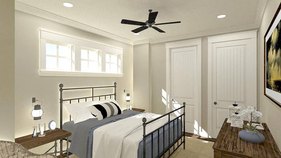 Bathrooms are compact but well-appointed, supporting efficient plumbing runs and minimizing wasted corridor space. The main bath serves secondary rooms; the other bath is configured as the master suite’s bath, providing comfort without excess square footage.