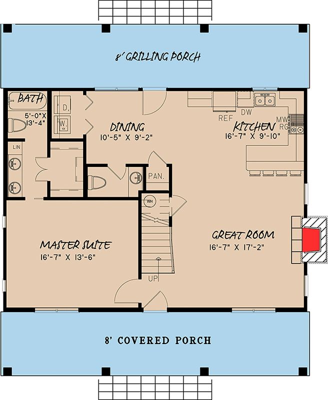 The covered front porch sets a welcoming tone and offers a calm spot for sitting, greeting neighbors or enjoying morning coffee. The 8-foot-deep grilling porch provides serious outdoor living space—a rare feature in homes this size. 10