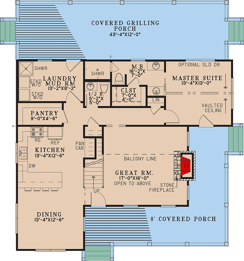 The modest overall heated area, combined with efficient circulation and elimination of wasted corridors, makes this home more economical to build and operate—yet visually expansive and comfortable.